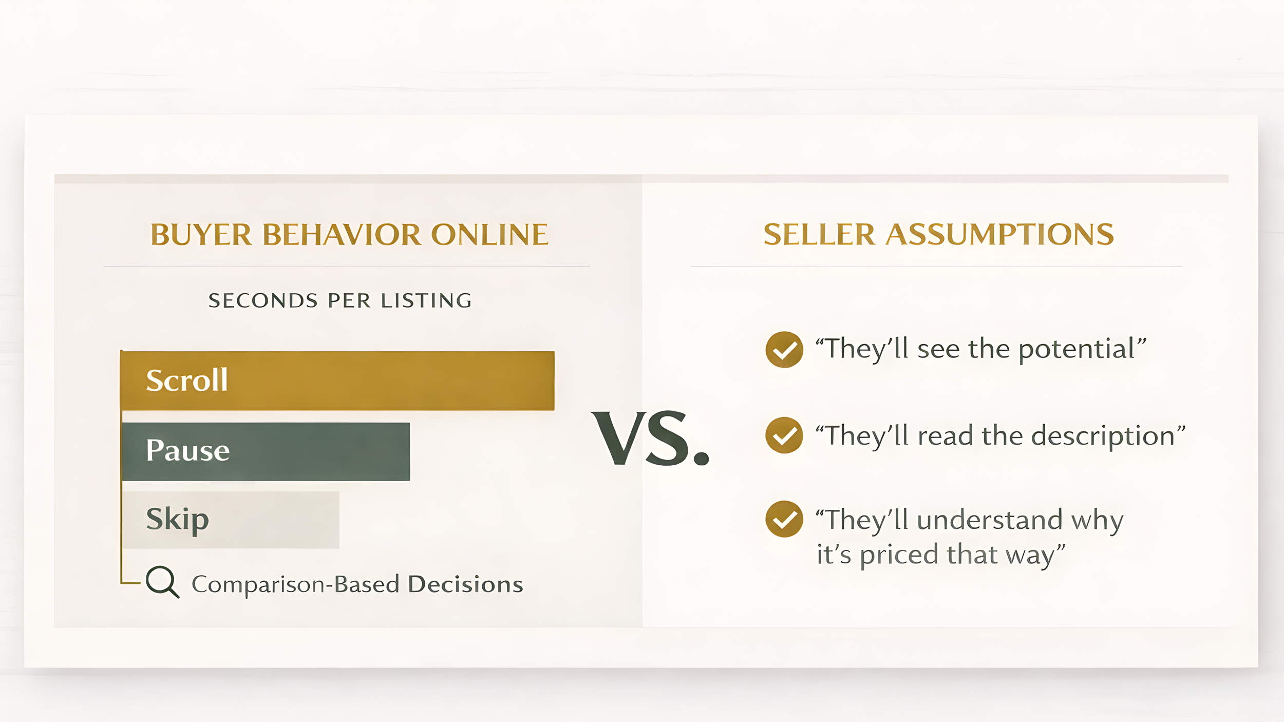 How buyers interpret your listing photos and presentation in the first few seconds.