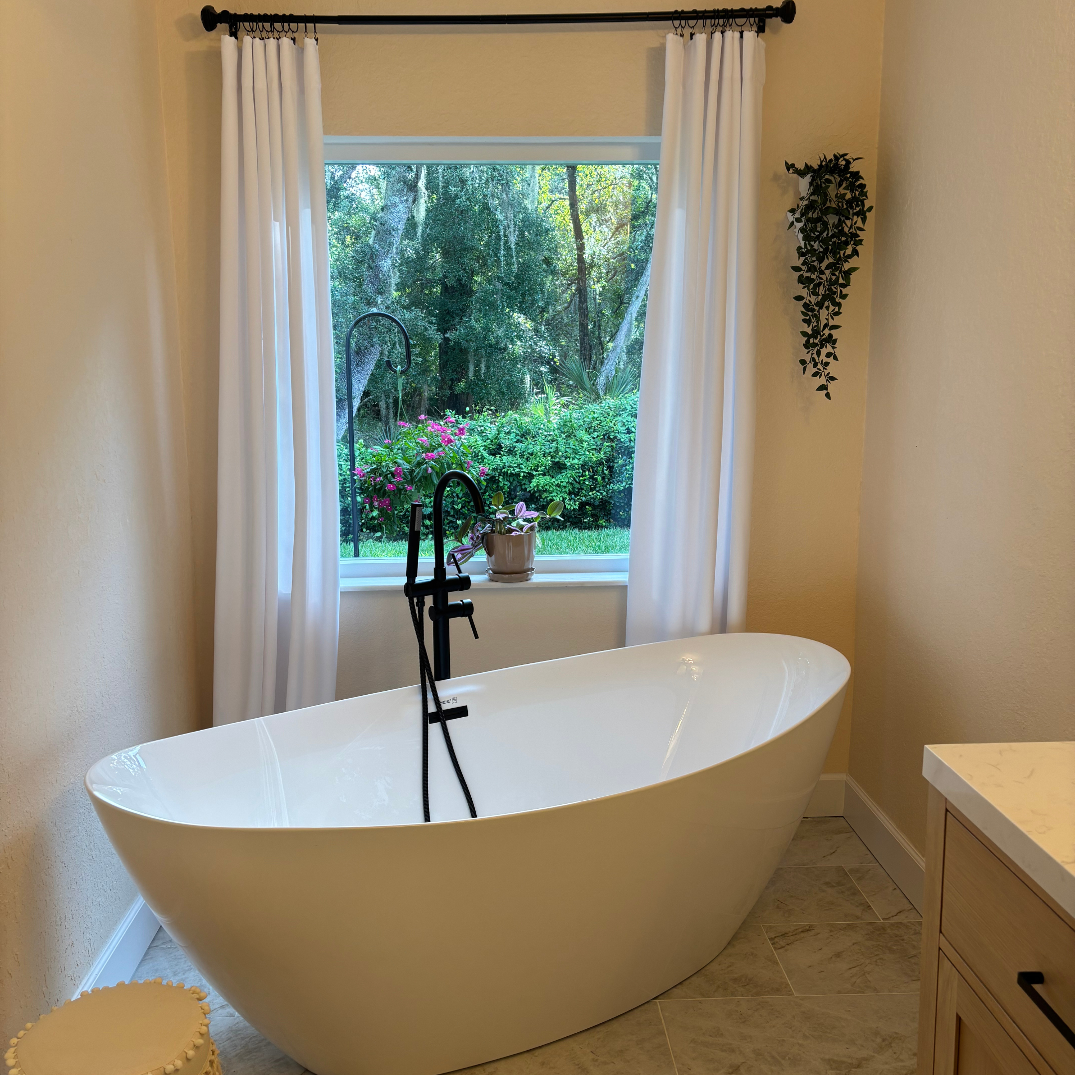 As part of my strategy, I recommended transforming the window into a wide, unobstructed view that would highlight the natural scenery and become a focal point of the bathroom experience. This decision was intentional and rooted in buyer psychology and human perception. Visual access to nature promotes calm, positive emotion, and a stronger emotional connection to a space.